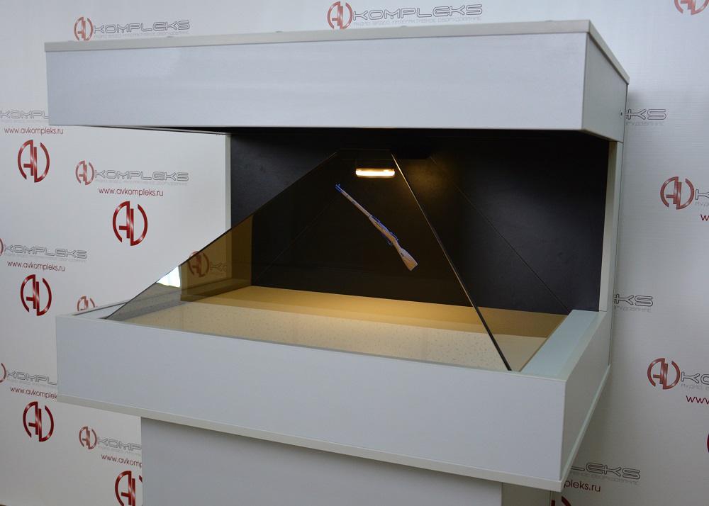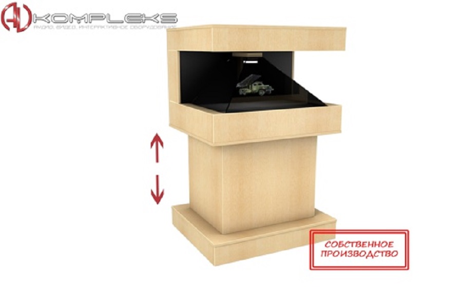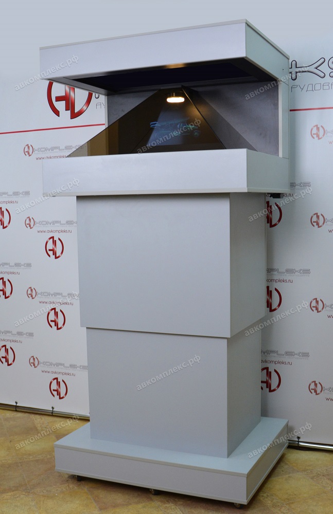Напольная 3D пирамида «AVKompleks» на электроподъёмном механизме представляет собой оборудование, которое способно демонстрировать выбранный объект в 3D-пространстве в виде голограммы не используя для просмотра 3D-очки. Выполнена пирамида из безопасного материала ЛДСП.