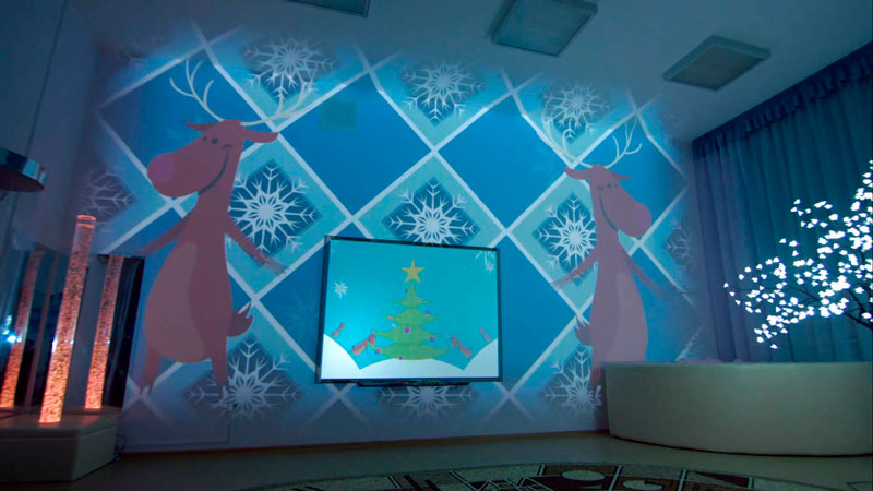 Технологии для полного погружения детей в обучающий процесс. Благодаря созданию проекции на все стены с помощью проекторов дети оказываются полностью погружены в учебный процесс.