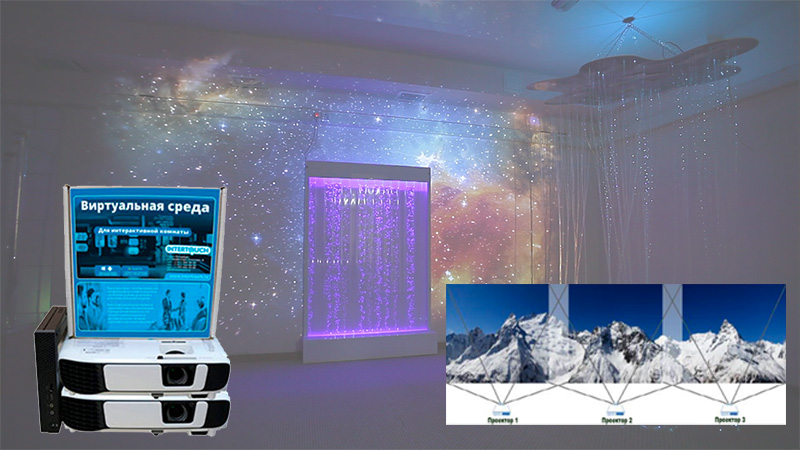Технологии для полного погружения детей в обучающий процесс. Благодаря созданию проекции на все стены с помощью проекторов дети оказываются полностью погружены в учебный процесс.