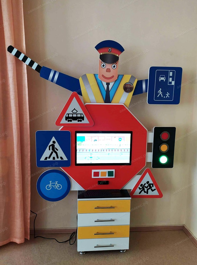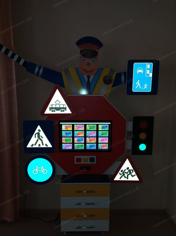 Выполненный из декоративного корпуса ЛДСП с кромкой ПВХ, мультимедийный интерактивный комплекс ПДД «СТОП» AV Kompleks подойдет для обучения детей правилами дорожного движения, дошкольного и начально школьного возраста. С помощью этого модуля и 340 программ занятия будут проходить с большим интересом для каждого ребенка. Программы разработаны специально для изучения правил дорожного движения в игровой форме на такие темы как (проезжая часть, знаки, транспорт, светофор).