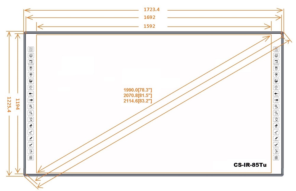 Интерактивная доска CS-IR–85Tu использует инфракрасную технологию: для фиксации касания используется комбинация инфракрасных светодиодов и фототранзисторов, которые расположены по периметру доски.