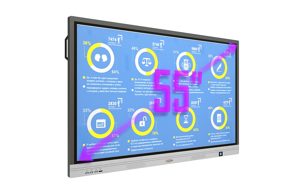 Интерактивная панель «ПРОСИГМА» СП 55-16 - это современная и технологическия система, заменяющия комплекс устройств для создания полноценного интерактивного образовательного процесса обучения. Сверх яркий дисплей с разрешением 4K и углом обзора 178 градусов позволяет транслировать контент самого высокого качества, встроенная аудиосистема обладает громким объемным звуком.