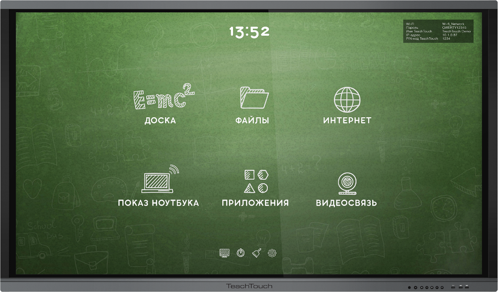 TeachTouch 3.0 75", UHD— интерактивный программно-аппаратный комплекс спростым, интуитивно понятным интерфейсом, состоящий изинтерактивной панели, свысоким разрешением ияркостью, атакже встроенным компьютером спредустановленным программным обеспечением для ещё более эффективного взаимодействия педагога иучащихся. TeachTouch 3.0 включает всебя уникальное, разработанное вРоссии, программное обеспечение, содержащее все необходимые вобразовательном процессе функции.