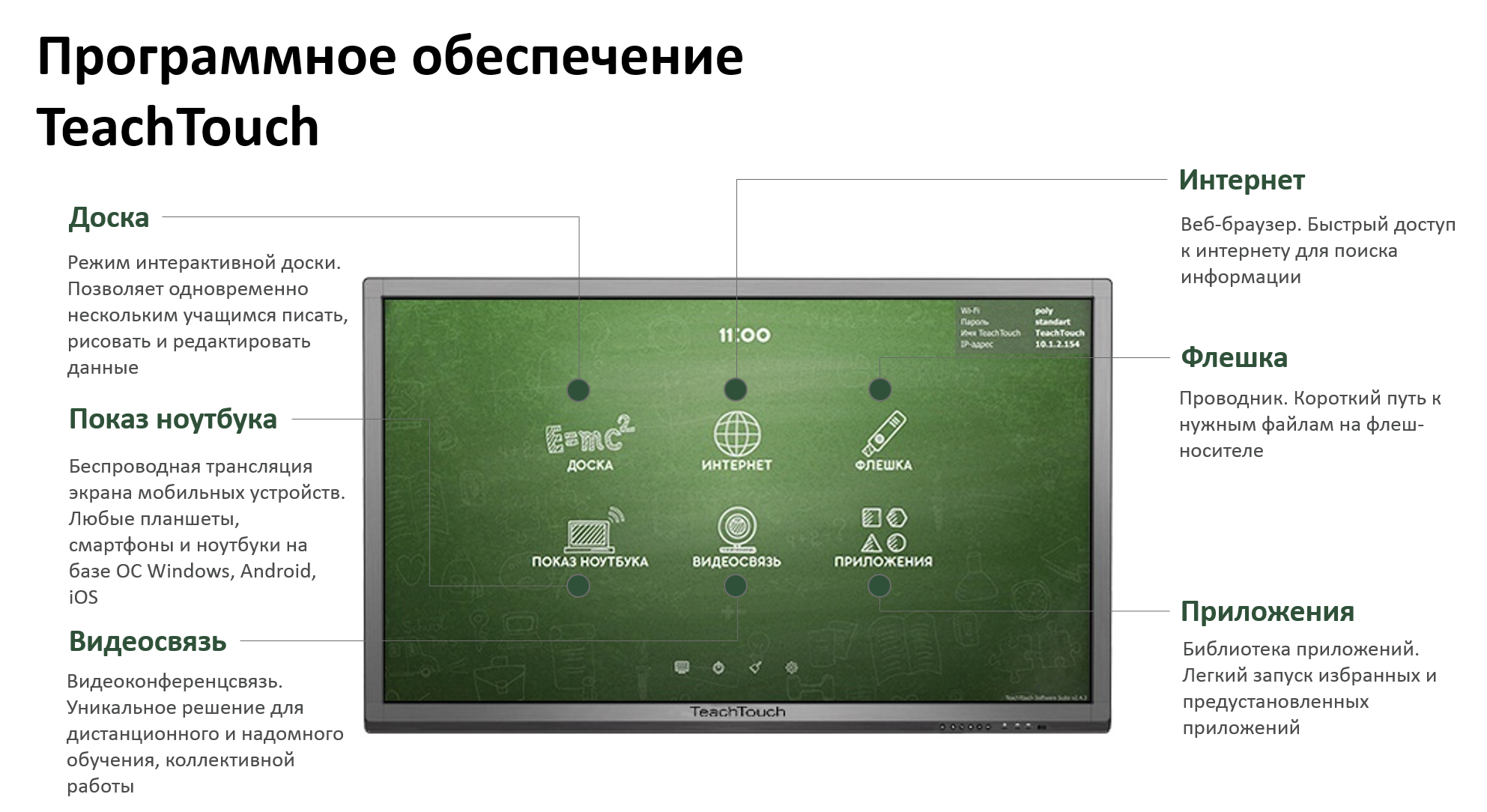Решение для образования набазе сенсорной LCD панели совстроенным компьютером ипакетом специализированногоПО вкомплекте.