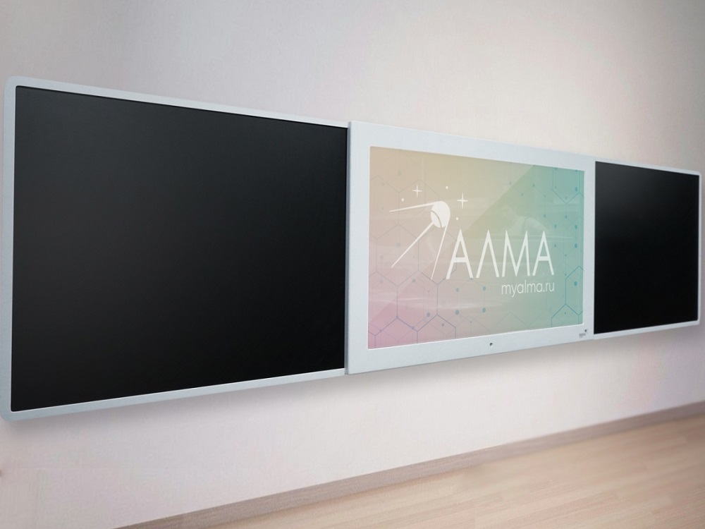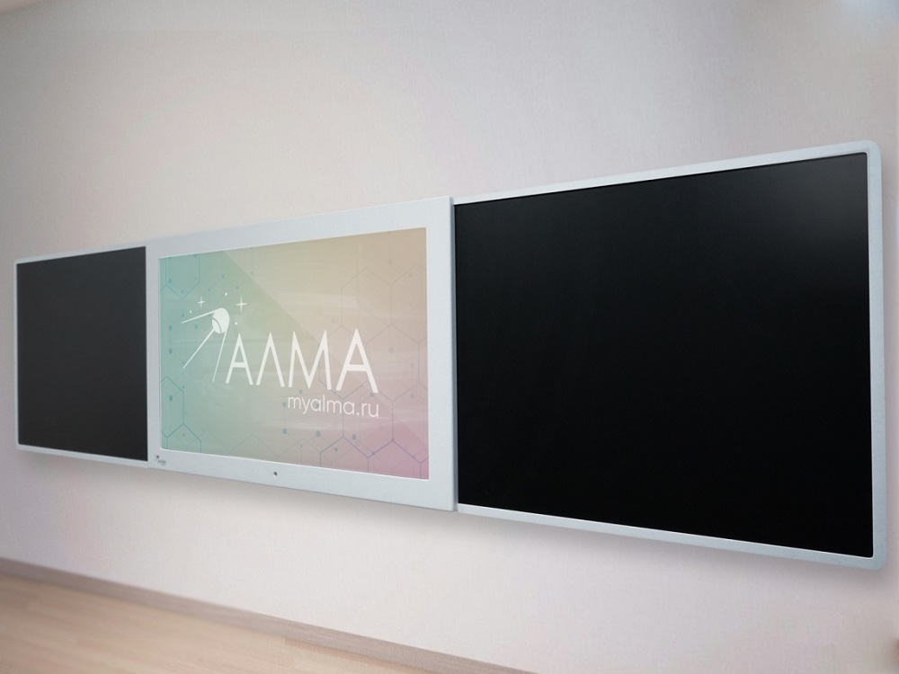 Современная школьная доска, объединяющая инновационные технологии и традиционные инструменты преподавания. В центре интерактивная доска с multi-touch (до 10 одновременных касаний), по бокам - пишущая магнитно-меловая поверхность. Подходит для оснащения школ, учреждений культуры, детских кружков, развивающих и коррекционных центров для детей.