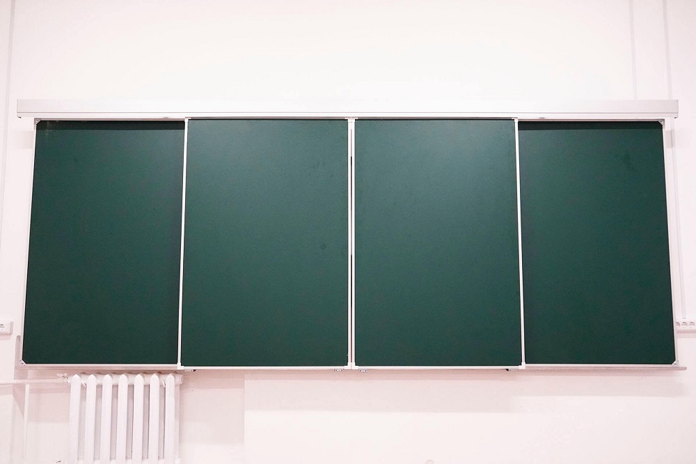 Функционально доска состоит из 4-х меловых секций, две из которых свободно перемещаются по рельсовой системе закрывая интерактивную панель встроенную в центре. Рабочая поверхность досок изготовлена из стального эмалированного листа, обрамление — высокопрочный алюминиевый профиль, благодаря чему имеет высокую износоустойчивость и прочность.