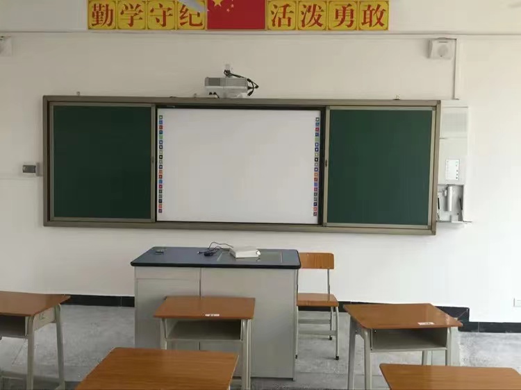 Раздвижная рельсовая система Interwrite + интерактивная доска Interwrite XGA-1 + короткофокусный проектор + крепление + кабель, состоит из 4-х поверхностей, две фиксируются к стене и две свободно перемещаются по рельсовой системе перекрывая установленную в центре интерактивную доску. Предназначена для установки в учебных заведениях всех типов: от дошкольного образования до высших учебных заведений.
