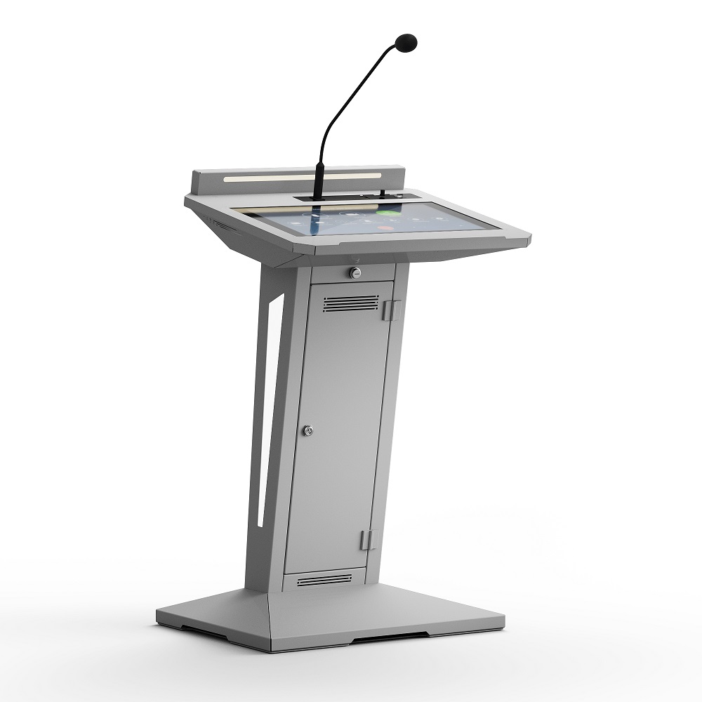 Встроенные стереодинамики и микрофон на «гусиной шее» с функцией ветрозащиты и подавления шумов обеспечивают чистый и четкий звук. А мощный процессор поможет быстро воспользоваться необходимыми для выступления материалами.