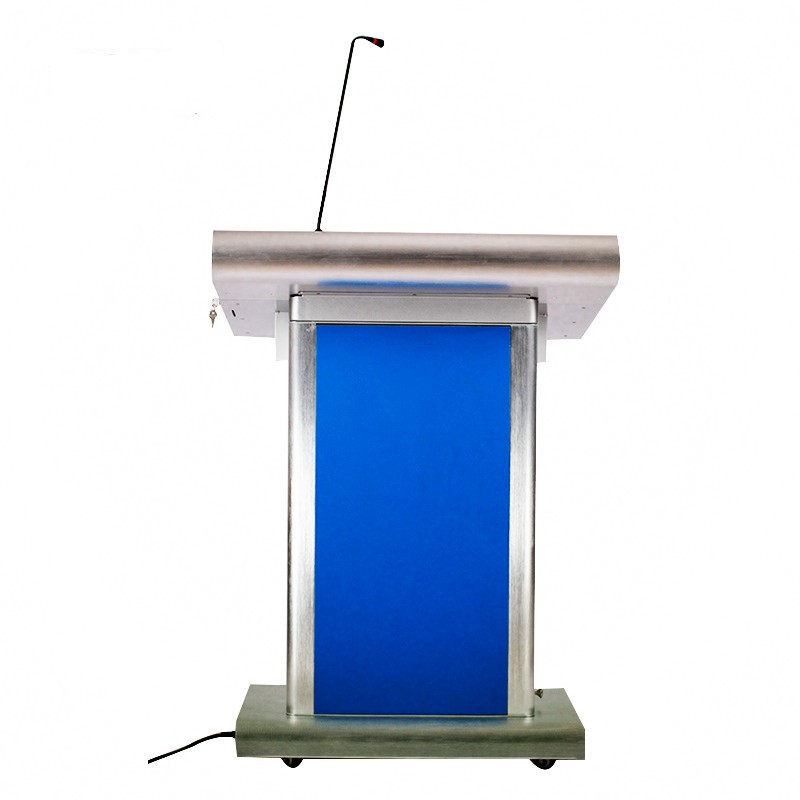 Интерфейсы для подключения ноутбука (USB, HDMI, Audio) расширяют возможности взаимодействия. Корпус из нержавеющей стали толщиной 1.0-5.0 мм и профиль из авиационного алюминия сочетают прочность и стиль, подчеркивая современный дизайн. Эта трибуна — идеальный компаньон для выдающихся презентаций в любом месте.