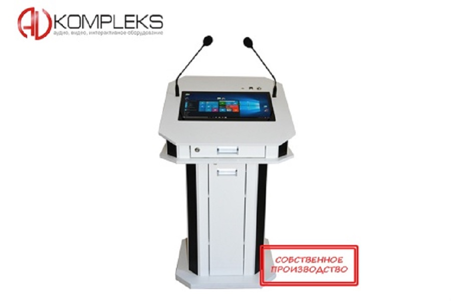 За производительность системы отвечает компьютер на основе: ЦП Intel Core i3 - 2,4GHz, ОЗУ 4Gb - DDR-4-1600 и SSD-120Gb. Он укомплектован сенсорным дисплеем, с разрешением 1920х1080 точек и поддержкой до 10 одновременных касаний. Дисплей расположен непосредственно перед оратором для комфортного управления материалами.