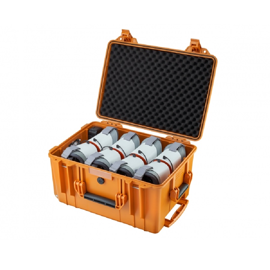 Комплект гарнитур поставляется в мобильном пластиковом кейсе, который обеспечивает не только сохранность оборудования, но и позволяет своевременно и оперативно его заряжать. Кейс оснащён колёсами и выдвижной ручкой для удобного перемещения из кабинета в кабинет.