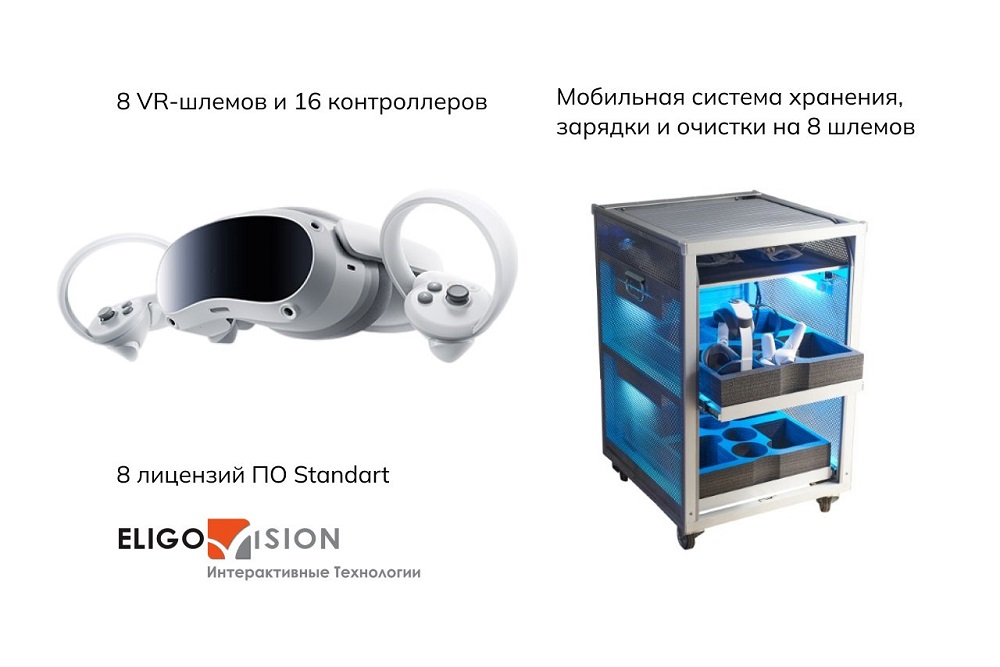 Мобильный класс виртуальной реальности Geckotouch VR08/4EVST128 EV Standart 1 год – это комплексное решение для обучения студентов и школьников рамках межпредметных связей и проектной деятельности самостоятельному созданию VR-приложений с одновременным обучением группы учеников.