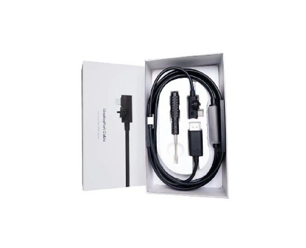 Подключение: через специальное крепление на кабеле происходит фиксация и подключение в специальный дисплей порт (USB TYPE-C) на шлеме. С другой стороны кабели имеется 2 разъема для подключения к ПК или ноутбуку: стандартный Display Port 1.4 (подключение на видео карте) и USB TYPE-A 2.0.