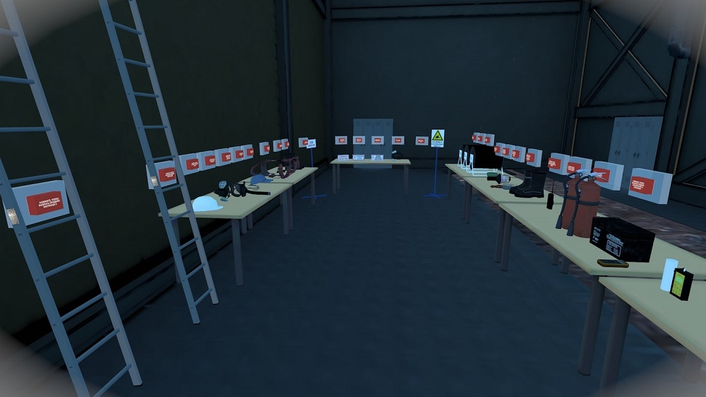 Тренажер «Газоопасные работы» воссоздает ситуацию, в которой пользователь попадает в колодец глубиной 4 метра, где ему необходимо провести осмотр трубы, используя газоанализатор и противогаз, в условиях недостатка кислорода и наличия взрывопожароопасных загрязнителей в воздухе. В симуляции можно задать дополнительное условие: допуск с неполным комплектом.