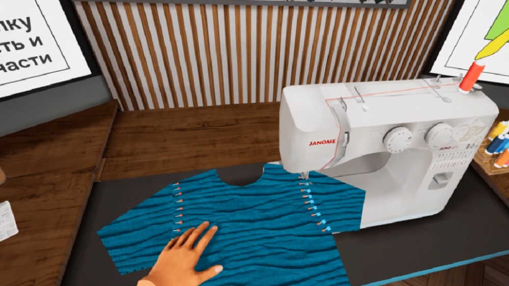 Симулятор Дизайнера одежды VR позволяет пользователям попробовать себя в роли дизайнера одежды в швейной мастерской. Обучающее приложение дает возможность ученикам самостоятельно пройти полный цикл производства одежды. В приложении реализуется комплексный подход к обучению пользователей, включающий в себя такие этапы шитья одежды как выбор текстуры и цвета основного материала, пошив изделия и прочее.