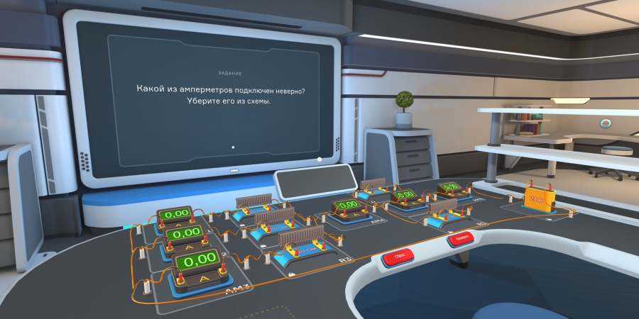 В каждом из сценариев ученик оказывается в фантастической виртуальной лаборатории. Виртуальный диктор сопровождает пользователя, раскрывая тему в теоретическом блоке и обозначая задачу и давая подсказки во время практических заданий.