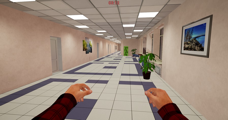 Эвакуация. Очаг возгорания в другом помещении. Пользователь может эвакуироваться. Опасные факторы пожара позволяют двигаться по путям эвакуации, но ближайший эвакуационный выход оказывается заблокирован. Пользователь должен найти альтернативный эвакуационный выход. Если это не удается, пользователь двигается в безопасную зону (туда, где отсутствуют опасные факторы пожара), которая располагается в другой части здания. То есть пользователю приходится двигаться не к выходу, а в противоположном направлении. В безопасной зоне пользователь принимает меры для безопасного ожидания помощи пожарно-спасательных подразделений.