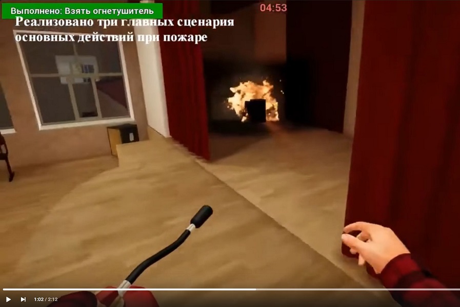 Обучающий VR-симулятор "ОБЖ. Пожарная безопасность" Modum Lab для проработки основ действий при пожарах. Программа имитирует чрезвычайную ситуацию. Пользователь действует в определённой последовательности, использует средства индивидуальной защиты (СИЗ) или подручные материалы, с помощью которых решает определённые задачи. Результатом обучения является усвоение правильной последовательности действий для безопасной эвакуации из места ЧС либо для ликвидации возгорания или обеспечения безопасности других участников.