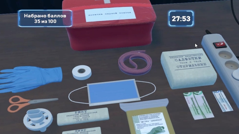 Тренажер «Оказание первой помощи при различных состояниях» воссоздает ситуацию, в которой пользователю необходимо оказать первую помощь товарищу, получившему травму. Вид травмы может быть разным: потеря сознания, ожог, кровотечение, обморожение, перелом, состояние пострадавшего так же разное: наличие или отсутствие дыхания, пульса, сознания, типа кровотечения, перелома. В зависимости от типа предприятия может быть предоставлена общая или специализированная помощь.