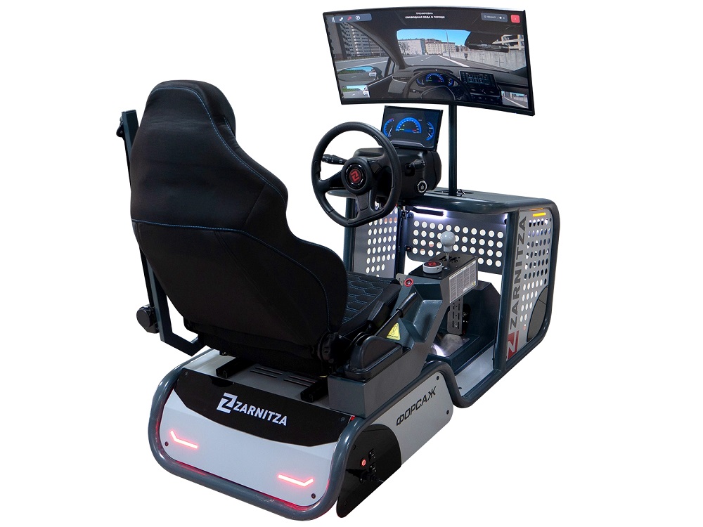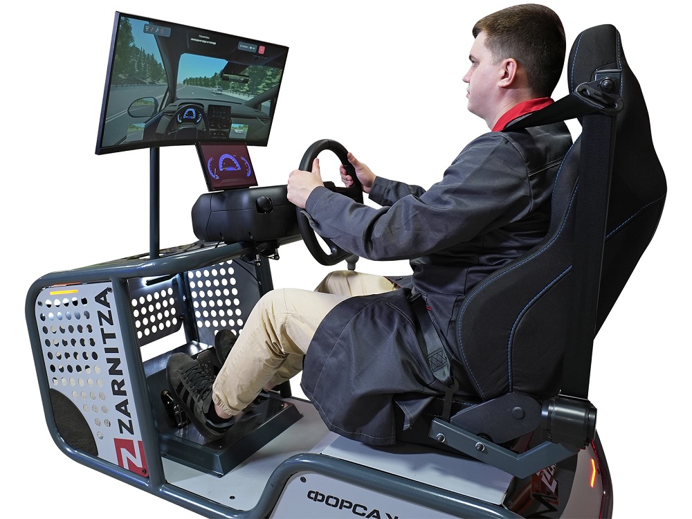 Устройство автотренажера Zarnitza "Форсаж NEW" предусматривает стандартную компоновку рабочего места водителя и размещение органов управления транспортного средства категории "В".
