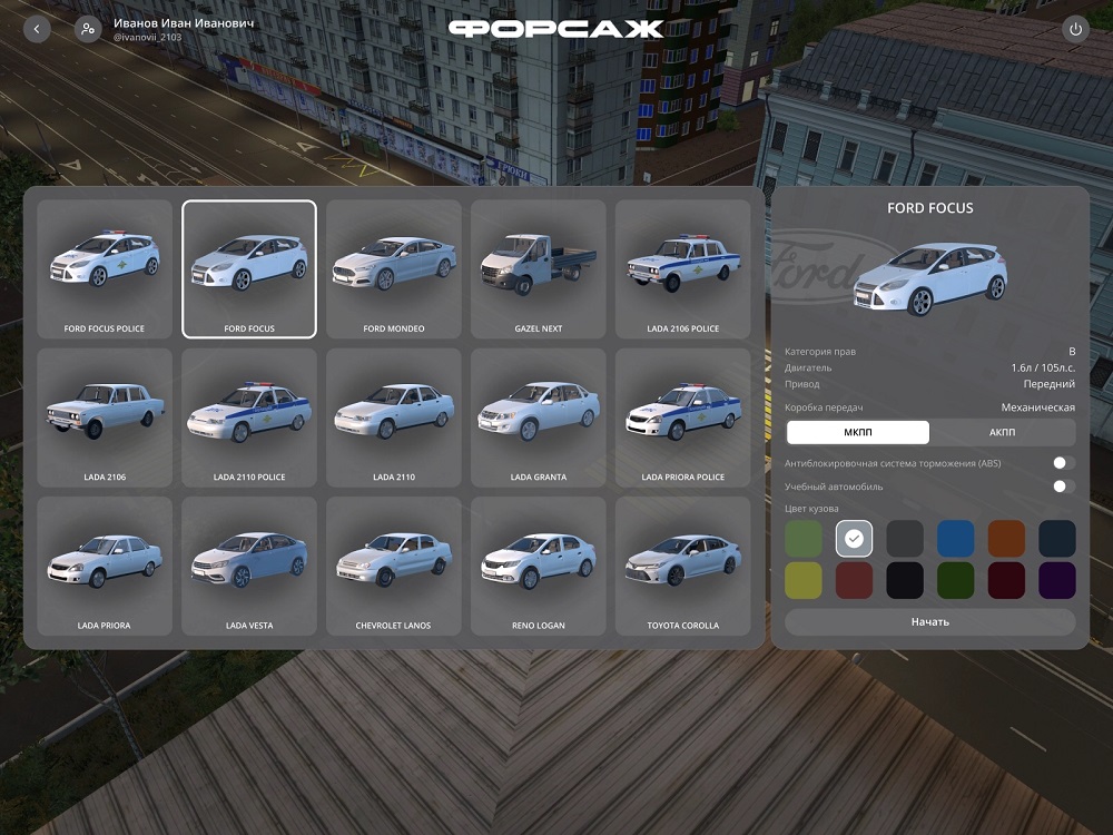 Программное обеспечение автотренажера на основе 3D-симуляции движения автомобиля с учетом физических параметров и динамики транспортного средства, а также свойств виртуальной окружающей среды предусматривает прохождение тренировочных и экзаменационных заездов на автодроме и в городе.