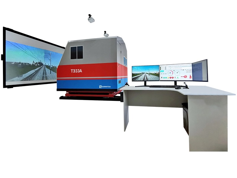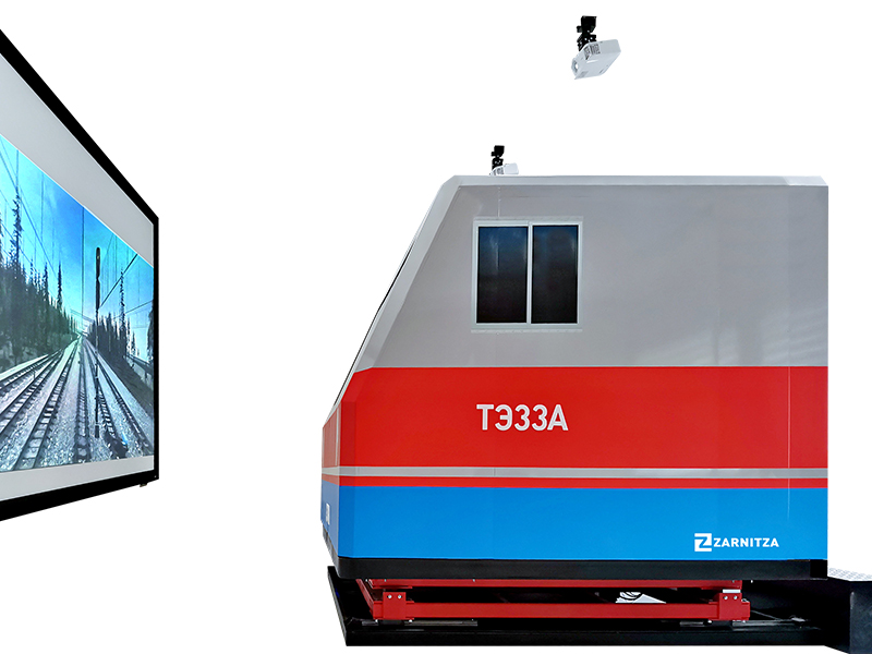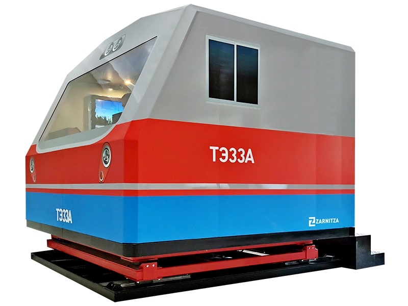 Тренажер кабины машиниста тепловоза ТЭ33А с полноразмерной имитацией кабины на динамической платформе Zarnitza предназначен для профессиональной подготовки локомотивных бригад, обучения в условиях, максимально приближенных к реальности, действиям в нештатных и аварийных ситуациях. Тренажер поможет значительно повысить уровень профессиональной подготовки машинистов тепловоза, контролировать уровень знаний и поведение в нештатных ситуациях.