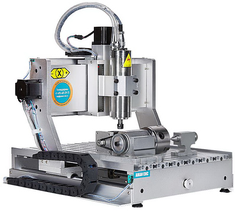 Фрезерный станок с ЧПУ AMAN 3040 4axis 1500W — это станок средней мощности, который позволяет производить обработку на всех четырёх осях.